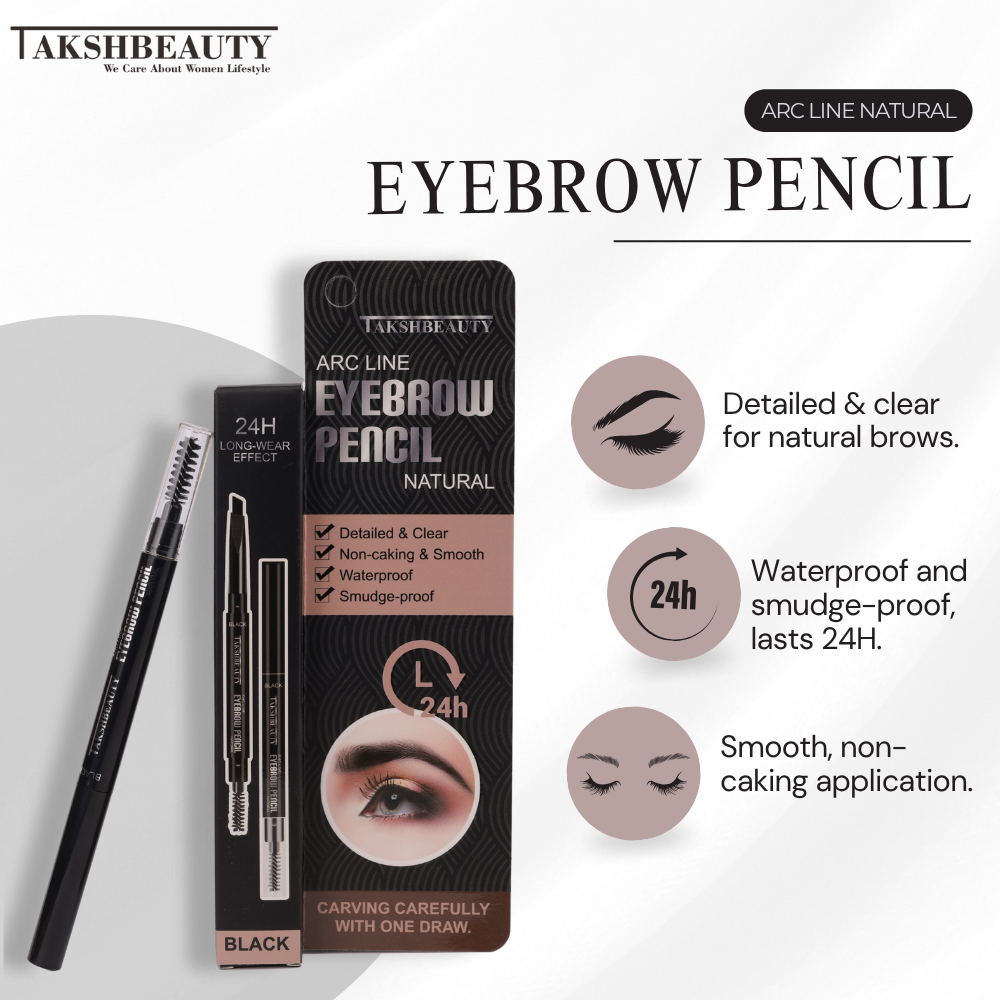 From natural daytime brows to bold glam arches, the TakshBeauty ARC Line Eyebrow Pencil lets you create any brow look effortlessly. Pair it with the TakshBeauty 24-Hour Liquid Eyeliner for a complete eye-defining combo!